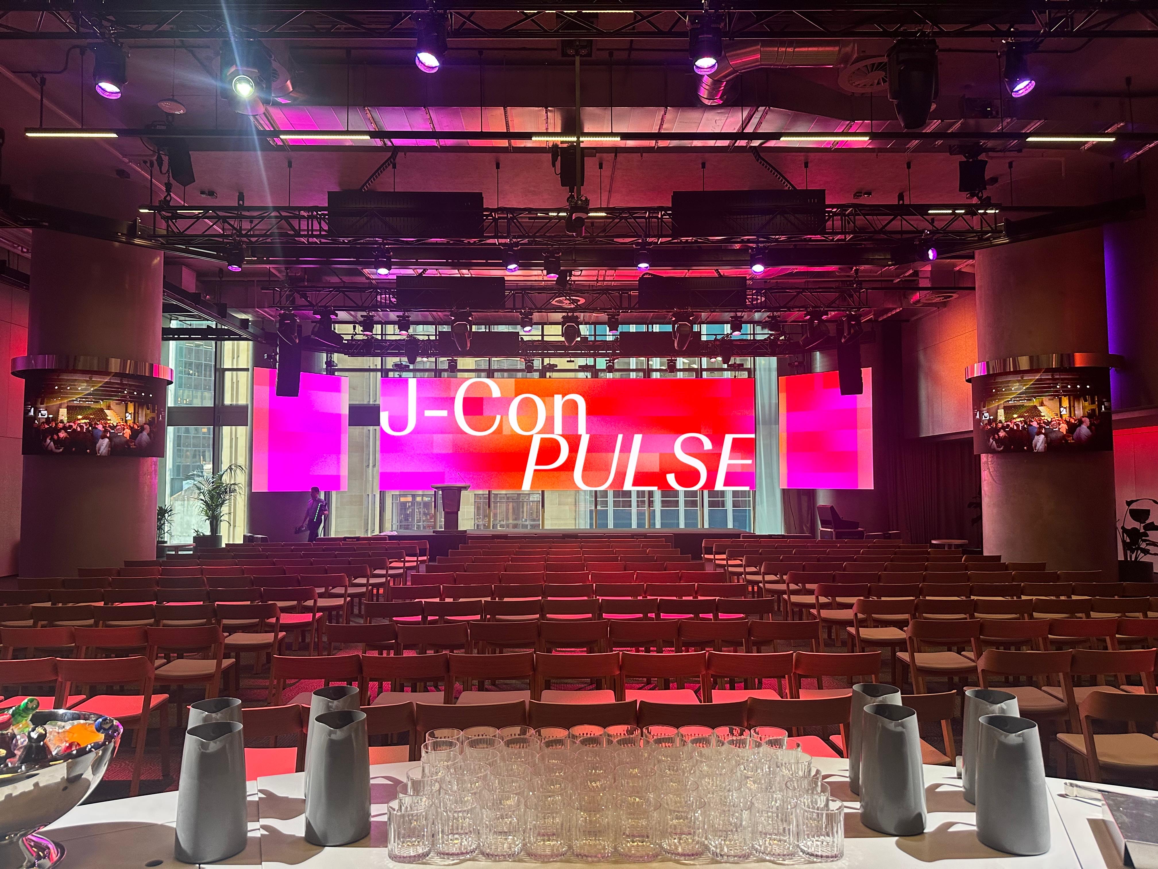 A high spec, flexible, built- in audio visual offering including large format LED presentation screens, curved column screens, hybrid-enabled video conferencing facilities and speaker lectern