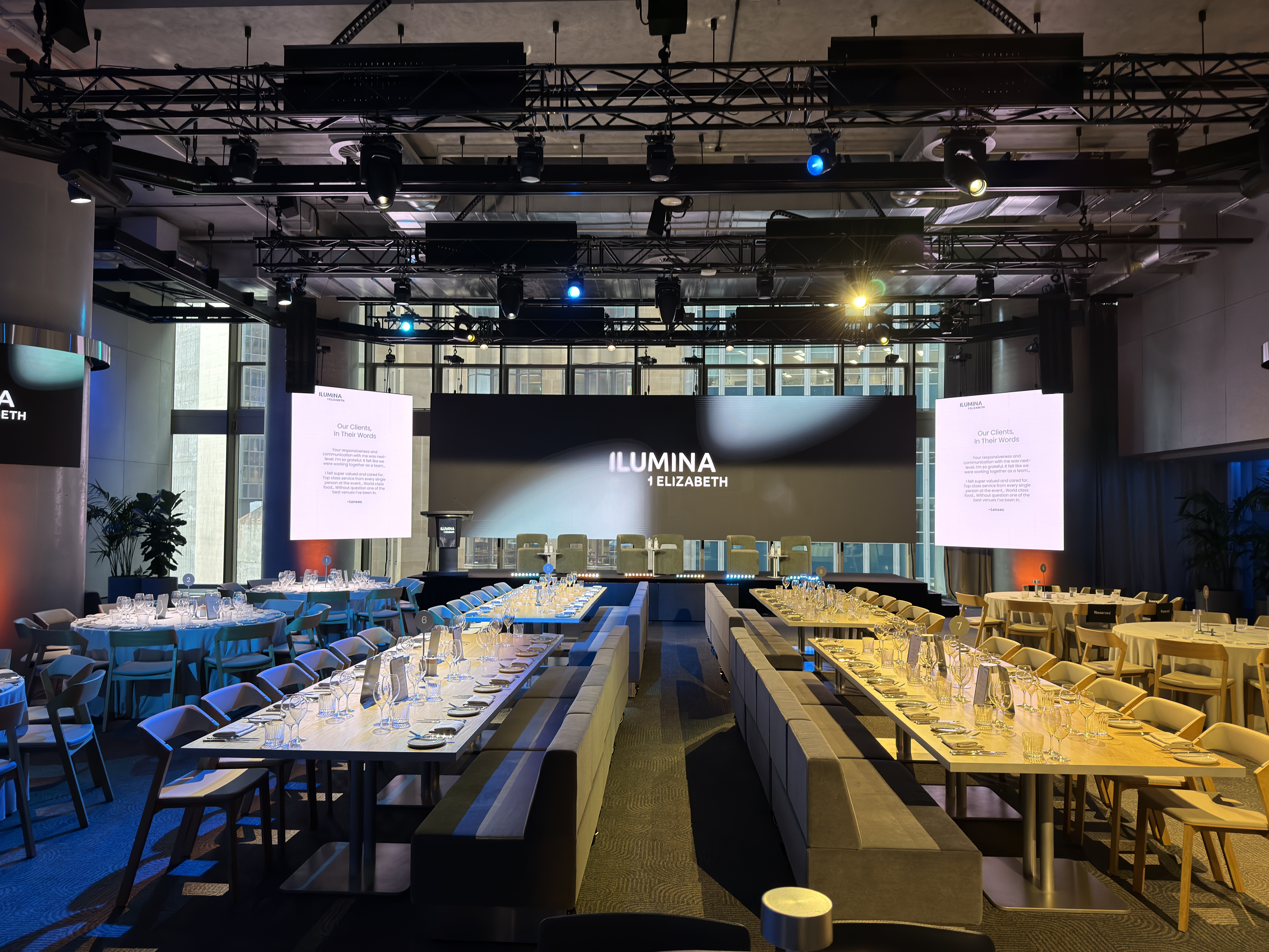 The ILUMINA North Hall, featuring flexible design and state-of-the-art technology, is well-suited for corporate events including dinners, cocktail parties, seminars, conferences, presentations, and product launches. The adaptable space efficiently caters to diverse styles and requirements.